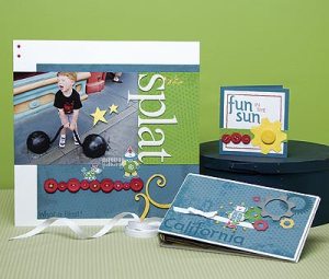 Gear up for fun using May’s featured Tinkerin’ Scrapbook Kits. You can mix and match your favorite memories with these vivid colors and cool stamp sets. Whether you purchase a scrapbook kit to attend one of my monthly clubs for free, or just want a Kit of the Month sent directly to your home, use the handy Workshop Guide included to make 6 complete 12 X 12 scrapbook pages and half a dozen cards in a couple hours. It’s as easy as 1-2-3.