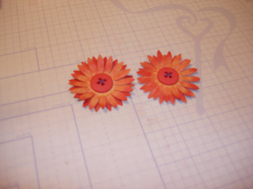 Once you have applied the darker chalk color to your flower, cut out the shape with your scissors. Then you can sew on a button in the center, or use a brad…do what makes you happy!