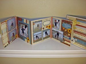 When I saw the fabulous pictures from my friend, Jen’s, trip to Virginia Beach with Steve and Alexis, I knew EXACTLY what I was sending her for Christmas! I purchased a My Creations Memory Keeper and 9 X 9 My Creations Memory Showcase Album and broke open all of my Grace products that I have been using for most of my projects this month! I just love how the Cocoa, Twilight Blue, Honey, and Barn Red colors really made these beach pictures stand out!