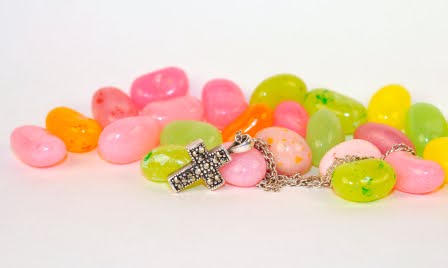 Jelly beans, chocolate bunnies, colored eggs, and bonnets all remind us that Easter is just around the corner. I came across this fun idea of making candy necklaces out of jelly beans! I thought it sounded so fun, that I am including jelly bean necklaces in my team members’ goodie bags for our team meeting Saturday! This would be a great project to do with your own kids, or at a Mommy and Me Workshop!