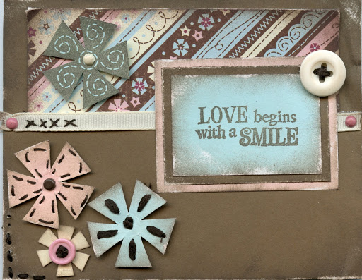 Don’t you just LOVE receiving a handmade card in the mail? I was sent this adorable card using Topstich Workshop on the Go by my friend Nicole! She and her adorable son, Coleman, came to my open house and had a blast meeting new crafters in the area. Nicole makes these amazing glazed tiles and is a talented card maker. I was so happy to see her.