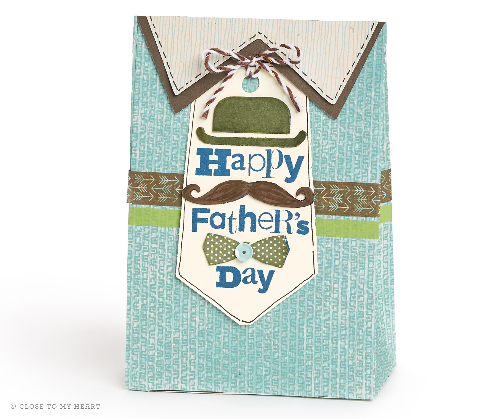 Here are just a few projects created with the Jackson product line, The Authentic Life stamp set (D1644, $17,95), Campfire Lifestyle stamp set (C1611, $13,95), Oceanside Sequins (Z3041, $3.95), and Extra Thick Twine in Glacier (Z3039, $3.95). The treat bag below also uses these products, as well as The Best Dad Ever stamp set (A1173, $6.95) and the Artiste Cricut Cartridge (Z1790, $99)!