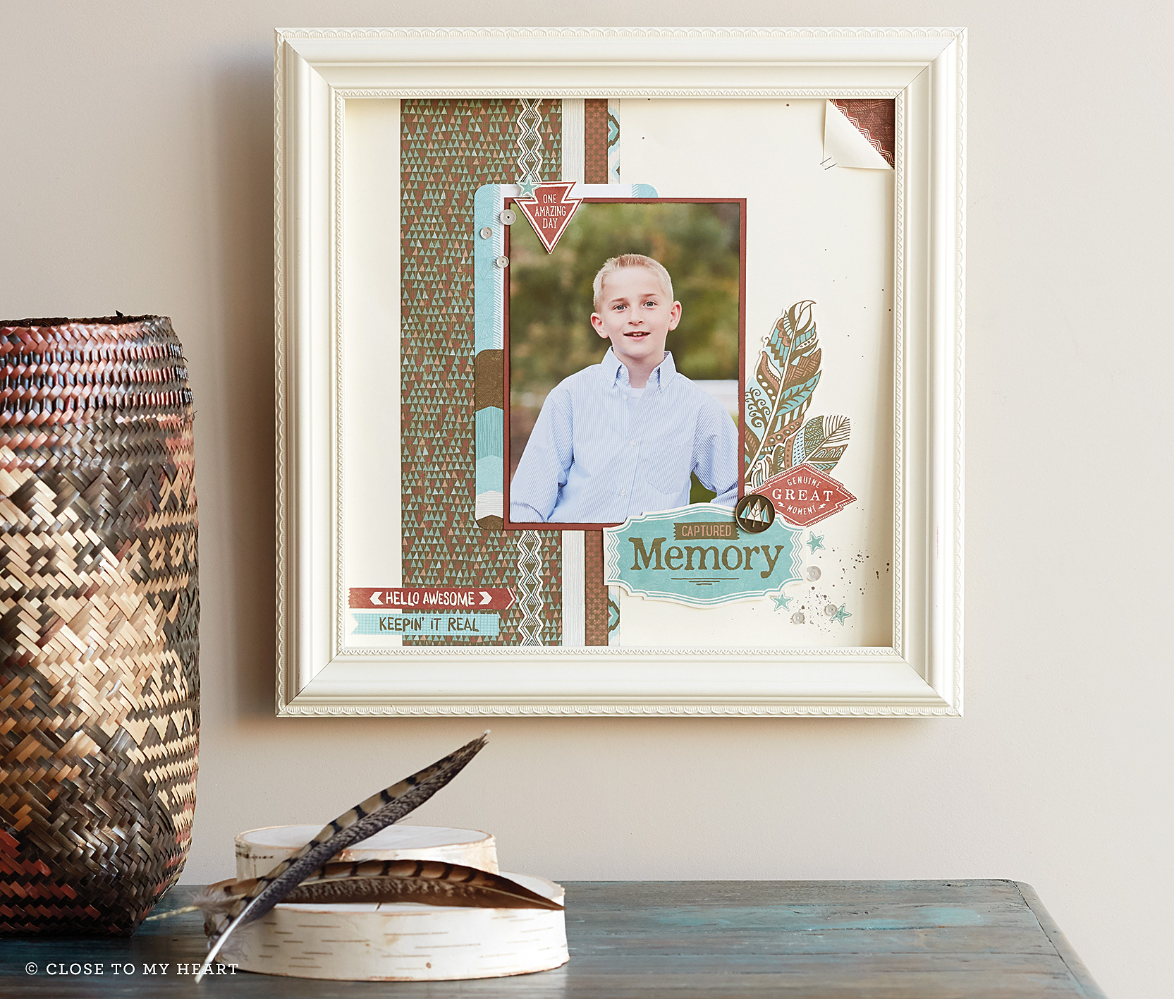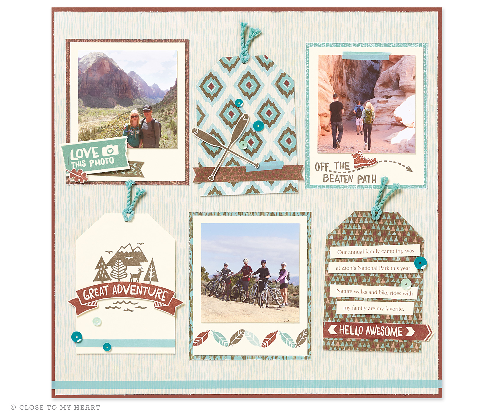 Introducing a great new color pallet with the Jackson product line! Cocoa, Glacier, Barn Red, and Juniper are the masculine colors used in this new line of products! People are always needing more masculine products for their “boy” pages. I also am asked a lot about outdoors theme paper, stickers, and stamps. The Jackson product line answers yes to both needs!